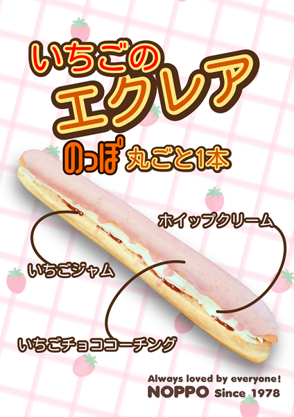 いちご尽くしの商品: いちごマシュマロのっぽ、のっぽ丸ごと1本いちごエクレア、