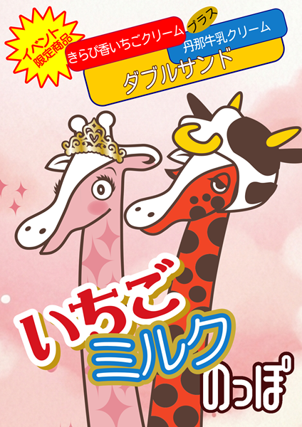 丹那牛乳のっぽクリームときらぴ香いちごのっぽクリームをダブルサンドした、この日だけの特別なのっぽを販売します。
