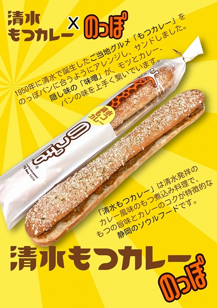 清水発祥の人気B級グルメ「もつカレー」を大胆にサンドした、今大会の戦略商品です。