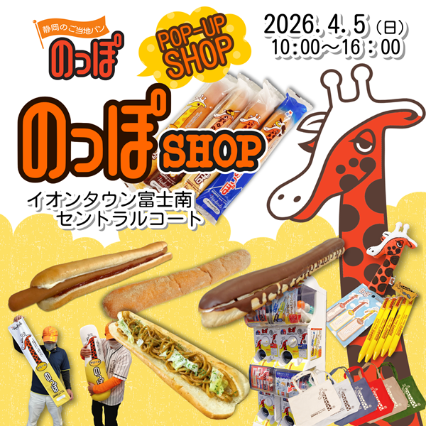 定番ののっぽパンはもちろん、普段スーパーには並ばない限定フレーバーや、新作グッズも多数ご用意いたします。